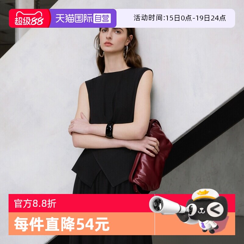 ariosea艾诺丝单官方旗舰店2026年春款黑色V领无袖连衣裙BR901108