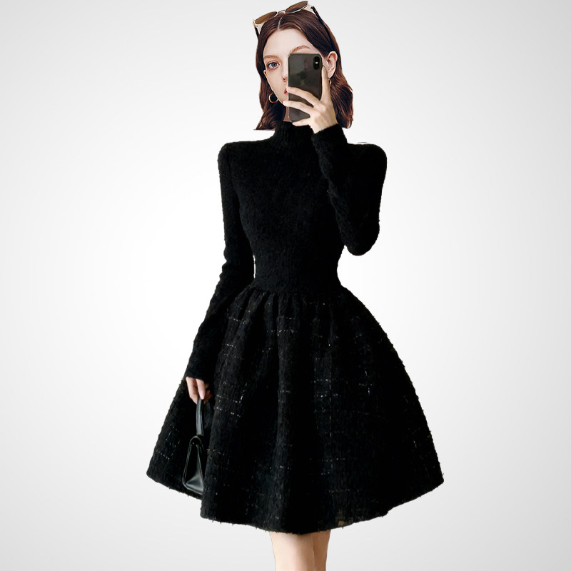 黑色长袖连衣裙加绒法式赫本风2026秋冬春款高级感收腰显瘦长裙子
