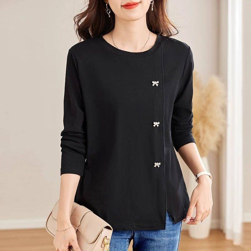 纯棉胖mm长袖t恤女春秋新款洋气女士上衣大码女装显瘦黑色打底衫