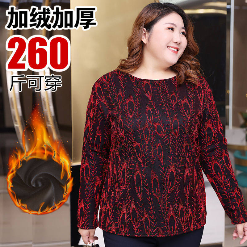 保暖内衣加肥加大码200斤胖mm加绒加厚打底衫女秋冬装长袖t恤上衣