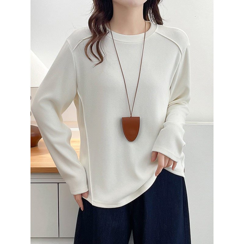 白色内搭打底衫女2025新款圆领宽松大码胖mm长袖t恤女早秋上衣女