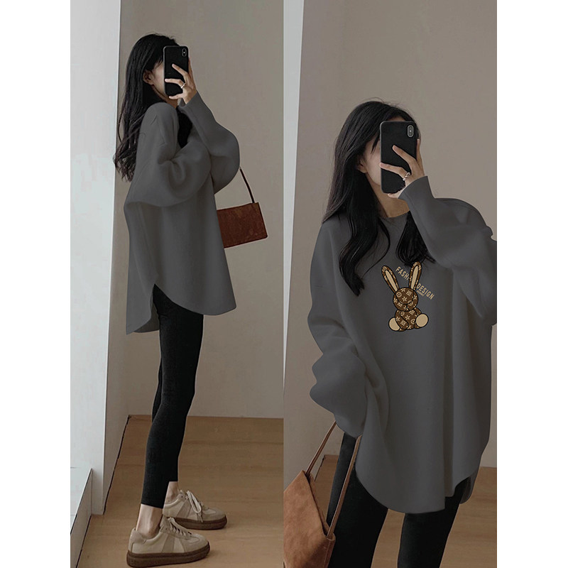 2024春秋冬季韩版新款大码女装胖mm长袖t恤女宽松显瘦打底上衣女