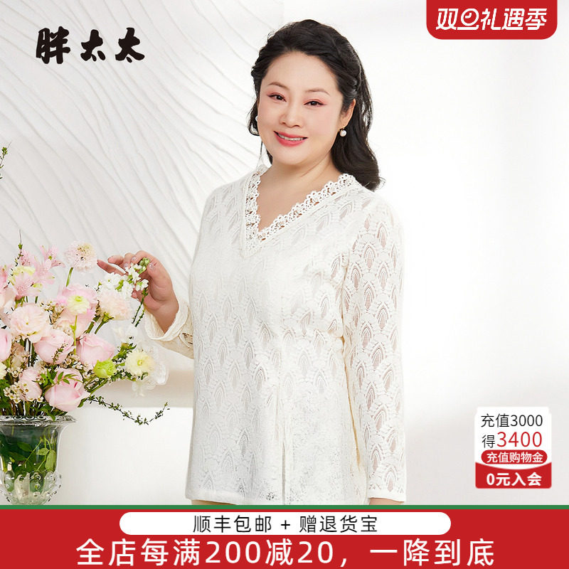 胖太太秋冬新品大码女装蕾丝衫时尚显瘦胖mm长袖T恤小衫325389910