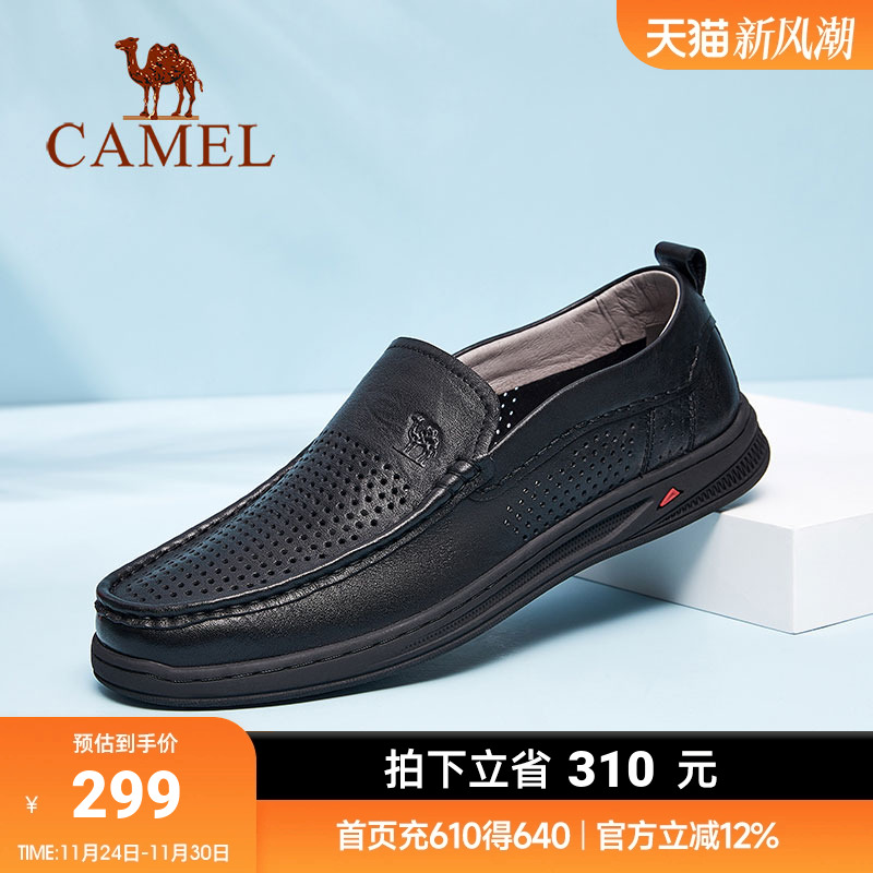 骆驼男鞋夏季一脚蹬真皮休闲皮鞋男士牛皮软底爸爸鞋镂空透气鞋男