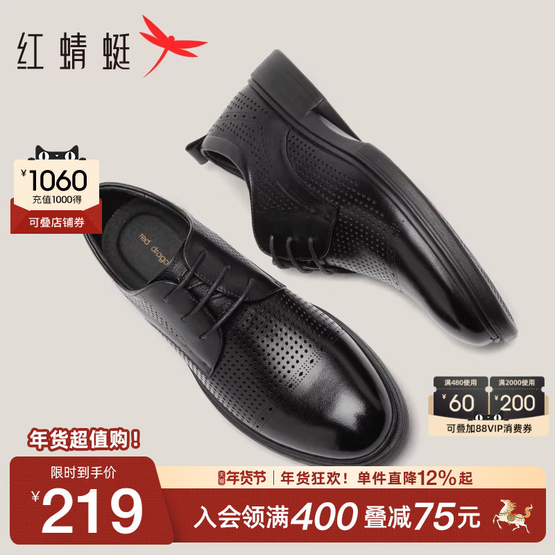 红蜻蜓男鞋夏季新款镂空牛皮德比鞋男商务透气正装皮鞋真皮皮凉鞋