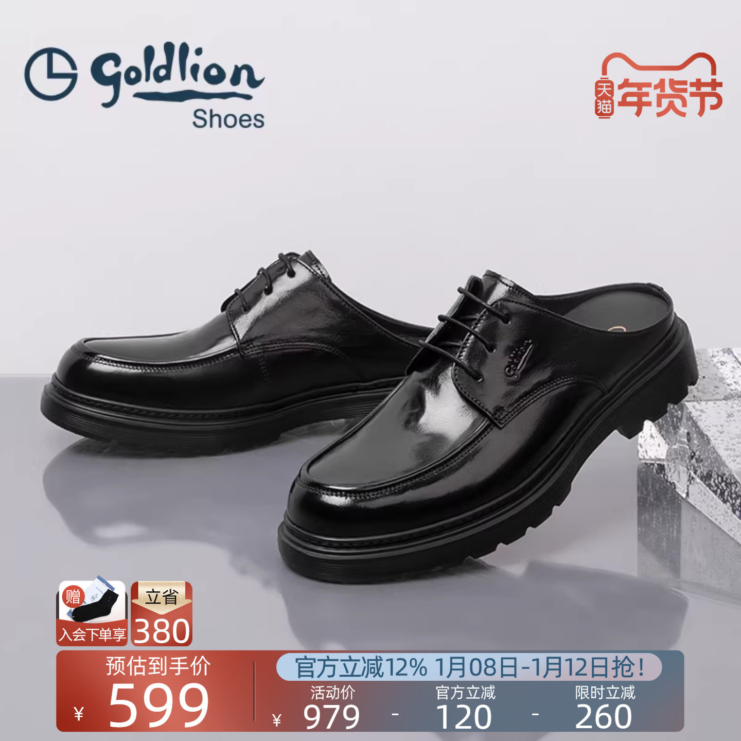 金利来皮鞋夏季新款透气一脚蹬休闲厚底半拖商务男士真皮镂空皮鞋
