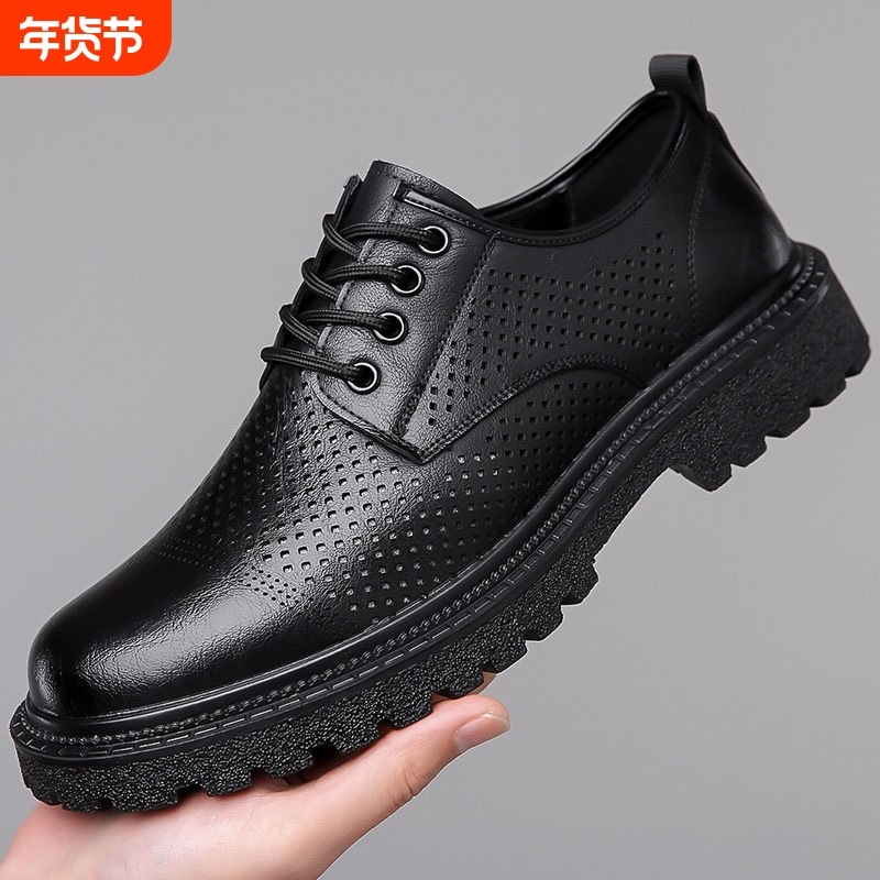 男士夏季镂空皮凉鞋休闲商务正装男鞋网眼透气洞洞打孔皮鞋男夏天