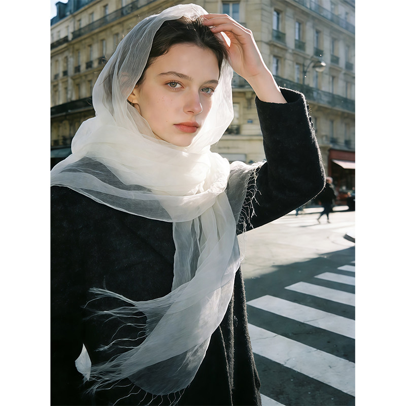 礼诚 雾霭晨雾100%真丝欧根纱围巾流苏maito桑蚕丝丝巾女旅游纱巾