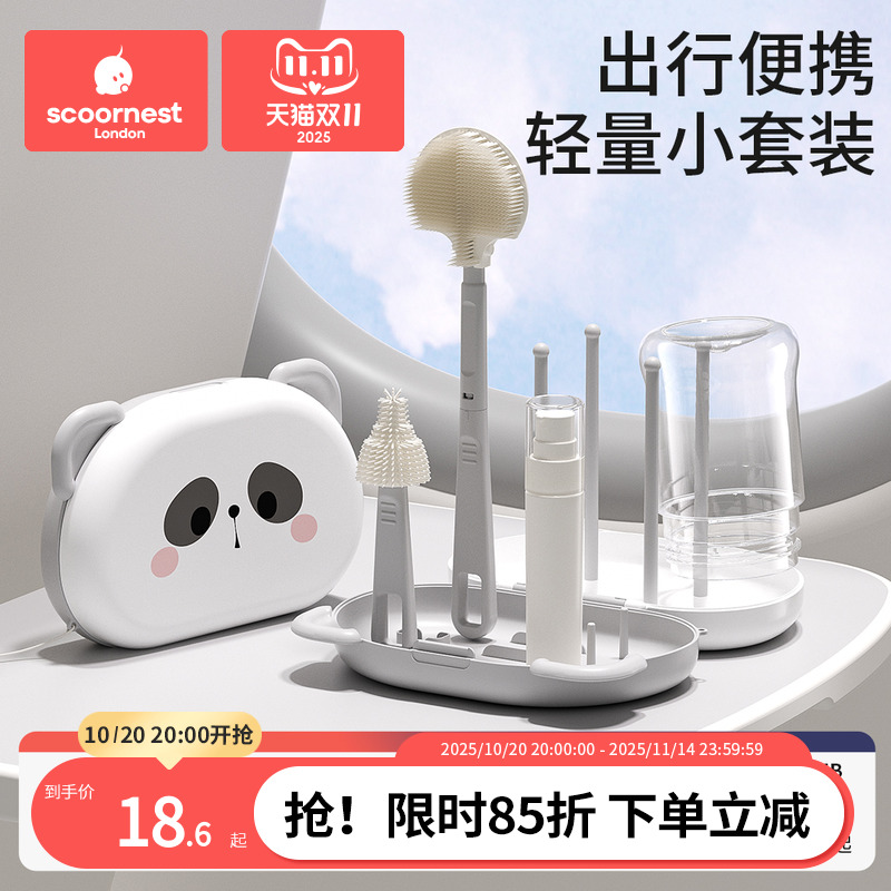 bebebao便携奶瓶刷奶嘴清洗刷套装专用婴儿奶瓶刷旅行沥水硅胶刷