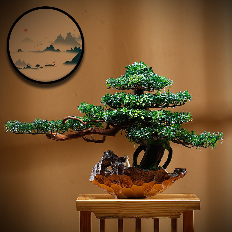 闽祥【彷真迎客松】新中式玄关摆件盆景绿植家居茶室样板间工艺礼