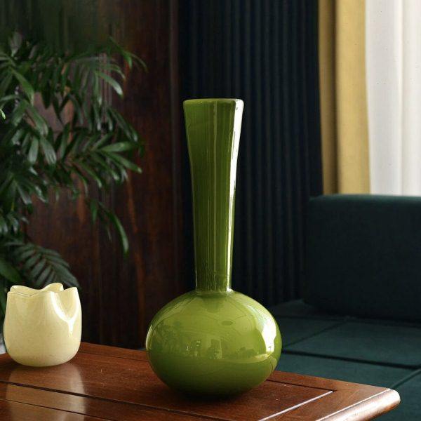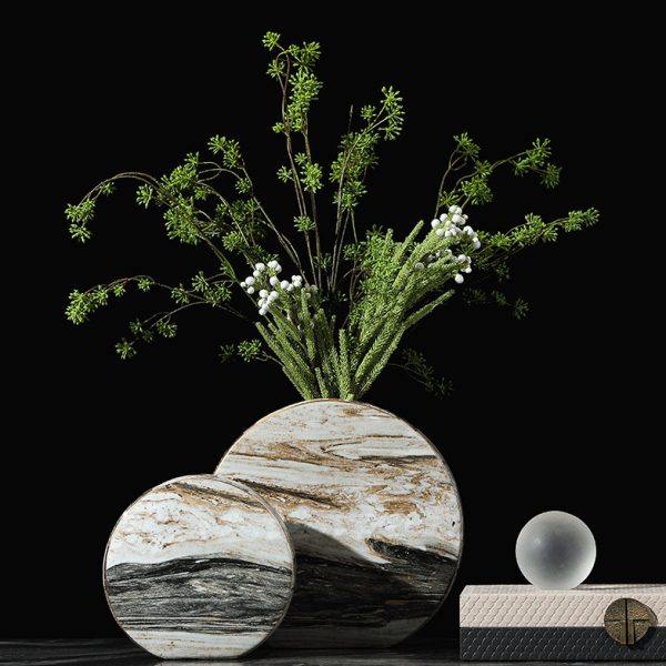 新中式玄关摆件圆形陶瓷花瓶轻奢样板房客厅餐桌插花花器软装饰品