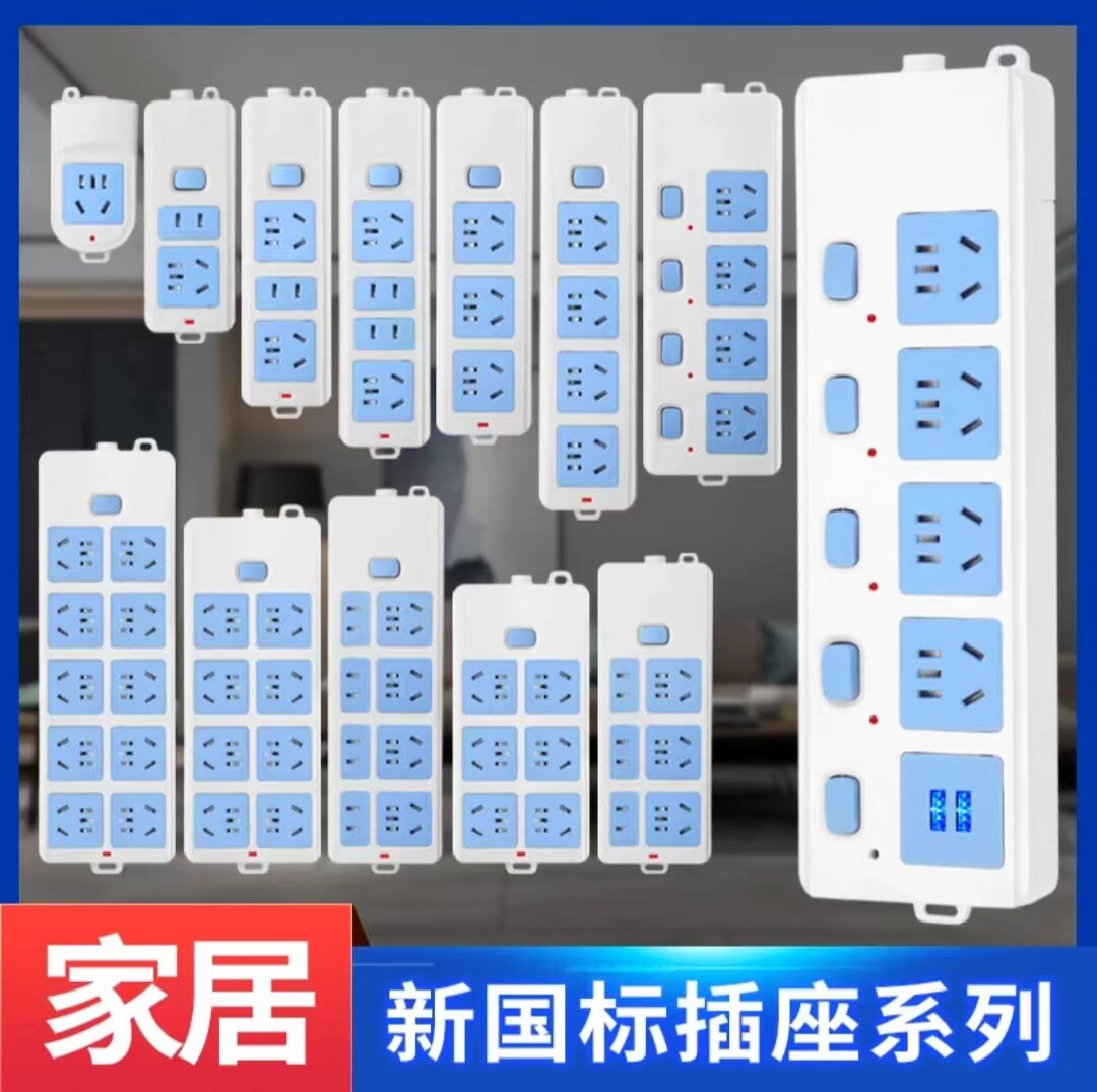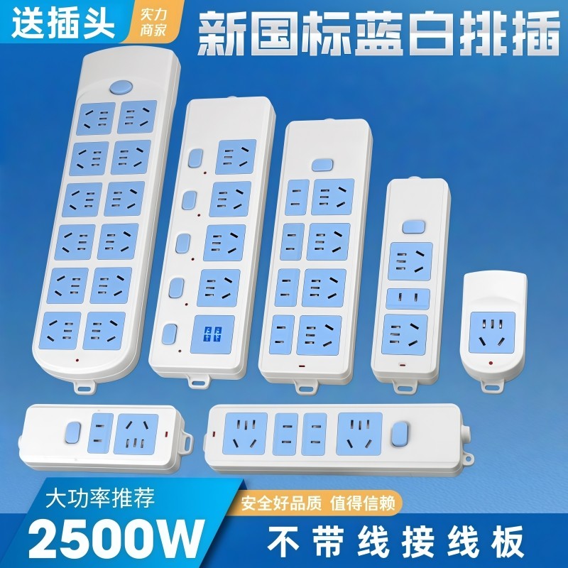 无线插线板10A接线板奥达睿蓝白不带线电源插座插排纯铜独立开关