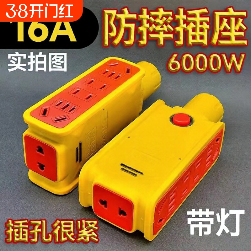 大功率防摔插座插排插扳10a16A工地地拖插座插线板不带线多孔排插