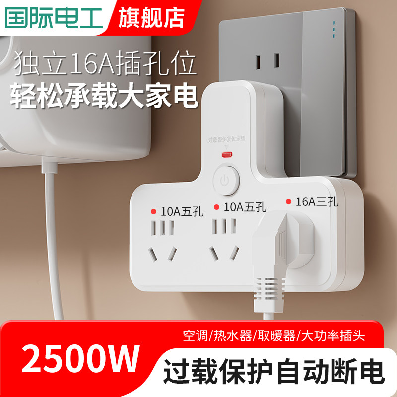 国际电工转换插头多功能插座一转多位USB转换器插线板不带线品字