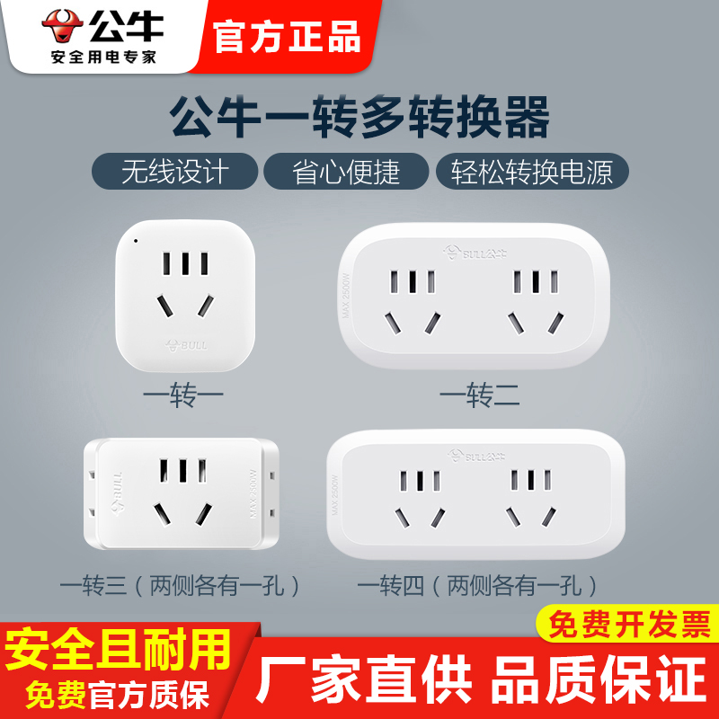 公牛插座转换器多功能扩展插线板不带线一转二三转换插头电源插排