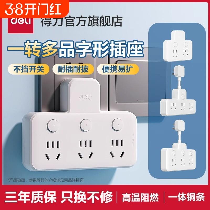 得力插座转换插头多功能插座一转多插座转换器插线板不带线品字新