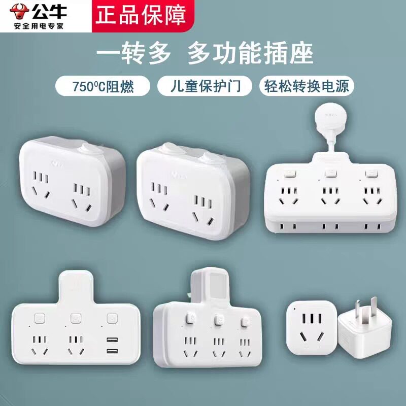 公牛插座转换器一转二插头多功能插座插座转换器插线板不带线插排