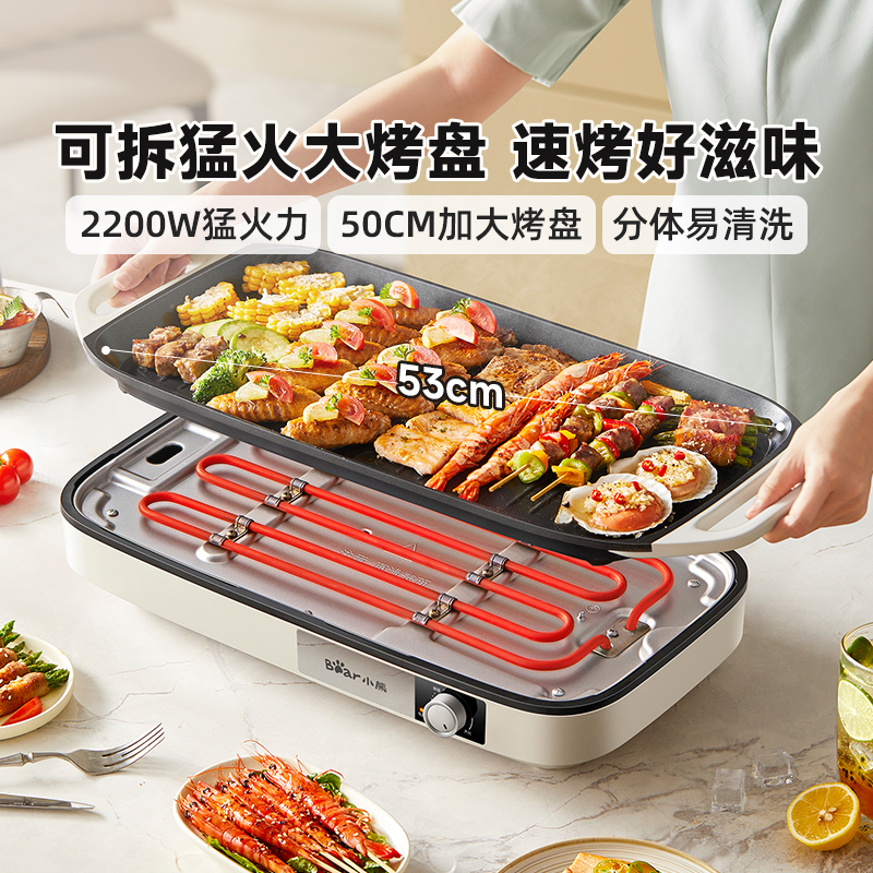 小熊烤肉锅电烤盘家用烤肉炉烤鱼盘一体室内轻烟可拆洗户外烹饪机