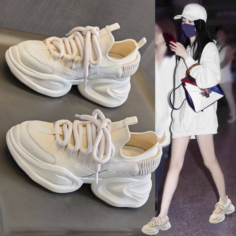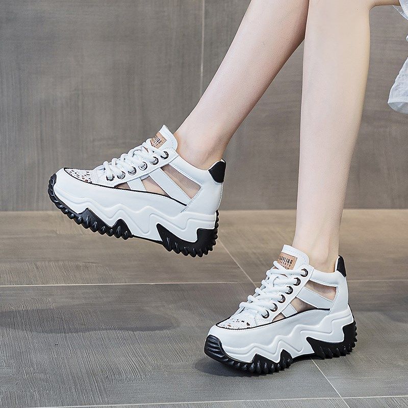 品牌特价真皮内增高老爹鞋女春夏新款网面透气厚底运动休闲小白鞋