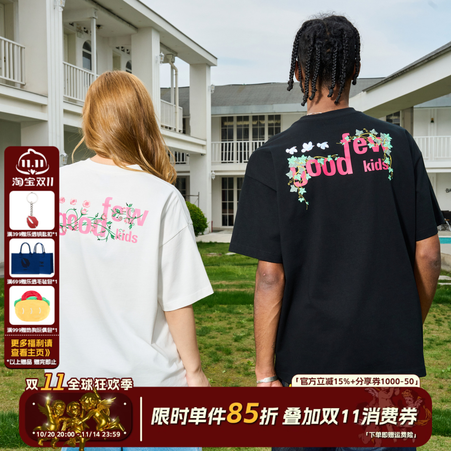 光变雏菊潮牌新款短袖男女情侣款玫瑰花刺绣重磅纯棉透气上身t恤