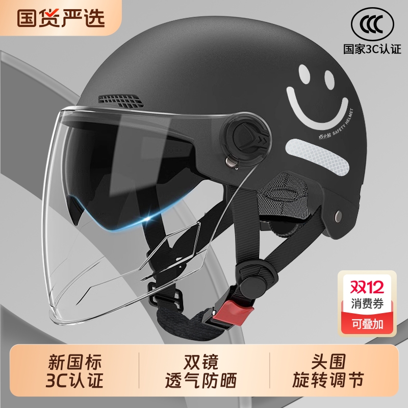 头盔电动车笑脸盔摩托车夏季电瓶车3c认证半盔新国标男女四季通用