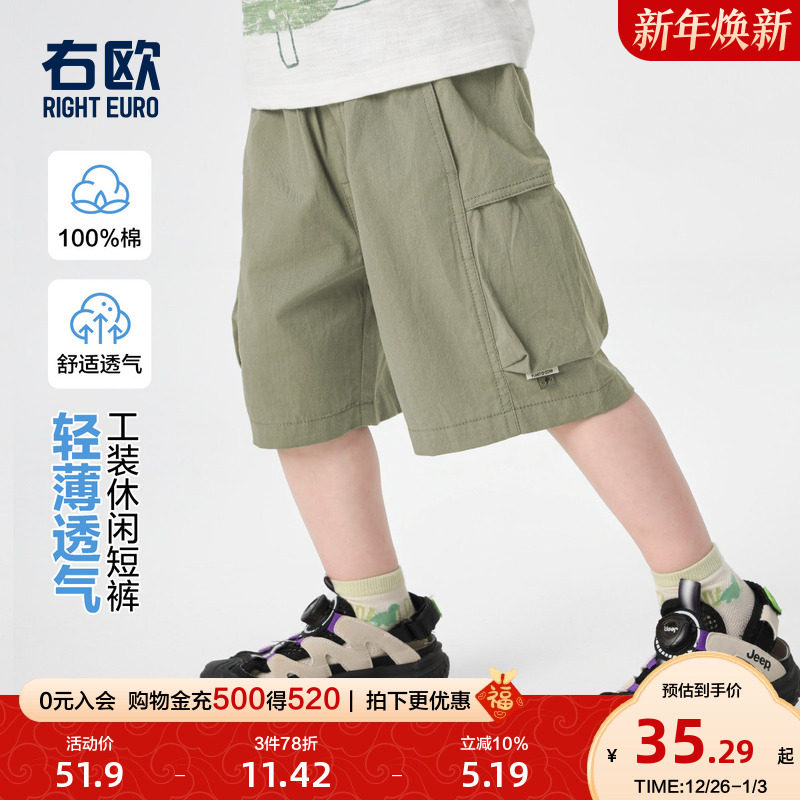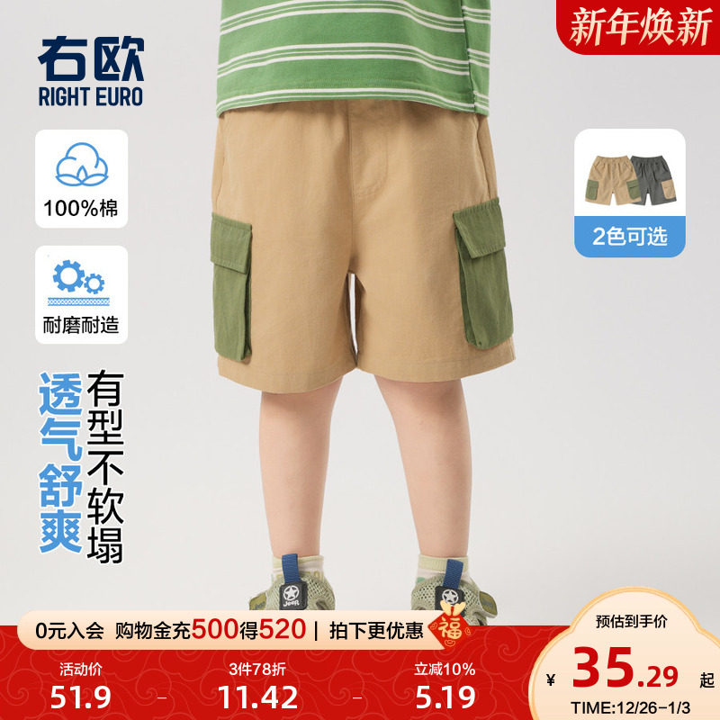 优露童装男童中裤ULLU25夏款工装风大口袋100%棉错落拼接五分裤子