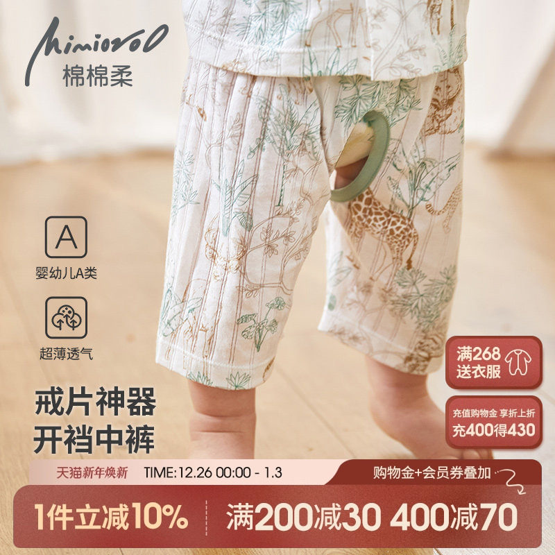 男宝宝开裆裤夏季婴儿裤子超薄款儿童七分裤纯棉外穿男童中裤夏装