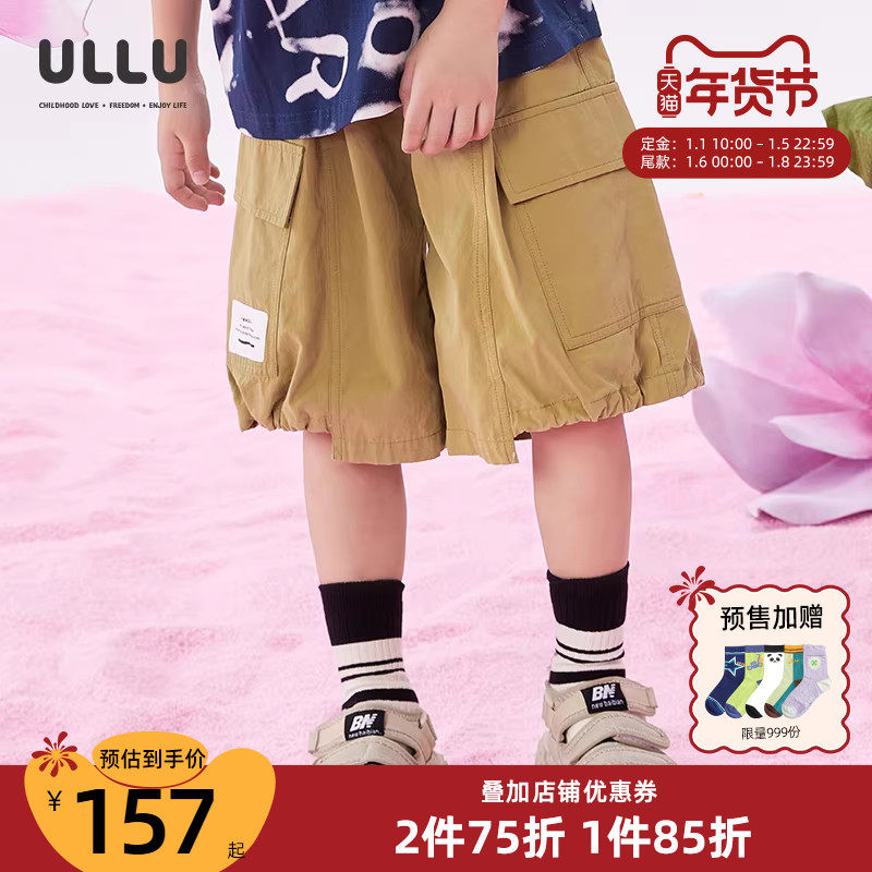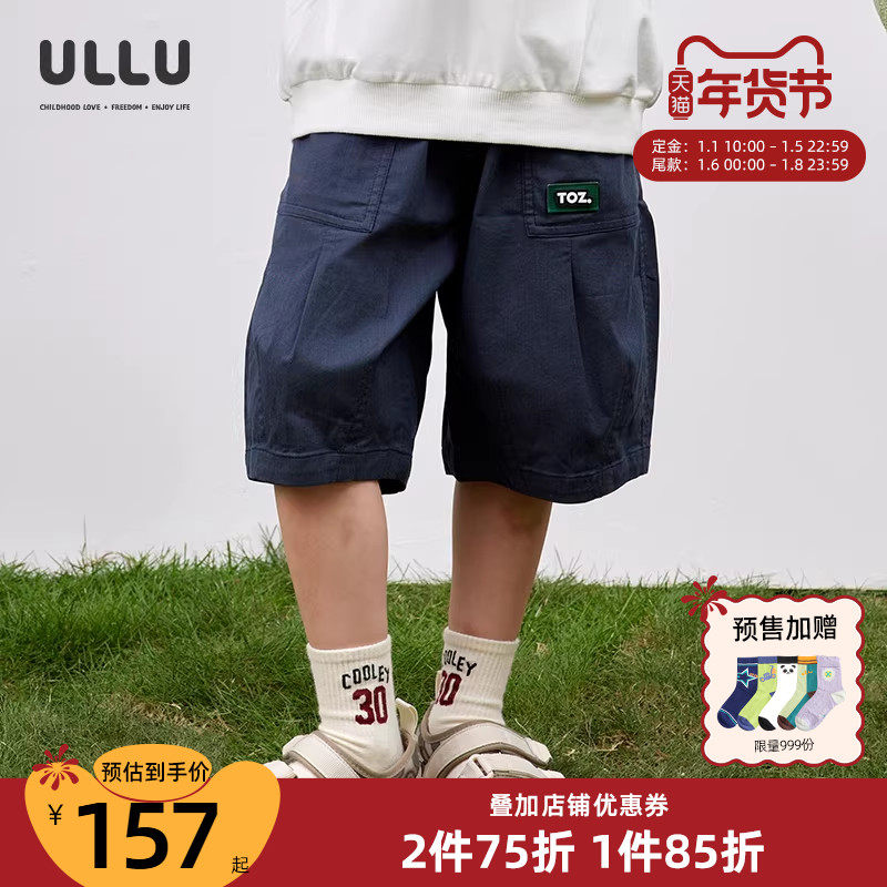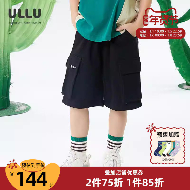 优露童装男童中裤ULLU25夏款胶标大口袋宽松弧形大廓型潮五分裤子