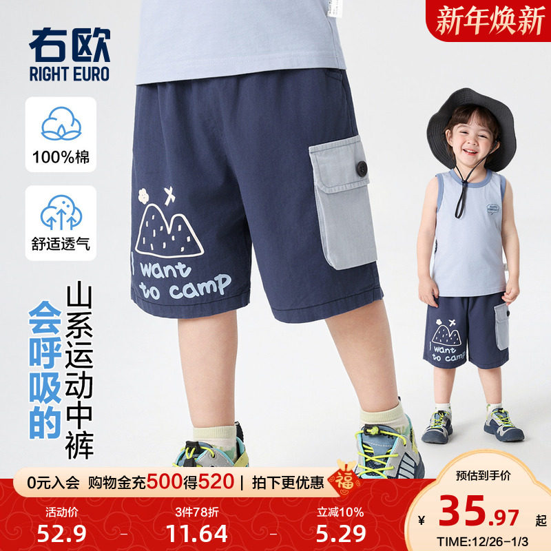 右欧男童中裤女童短裤山系撞色口袋夏季新款童装儿童休闲潮五分裤