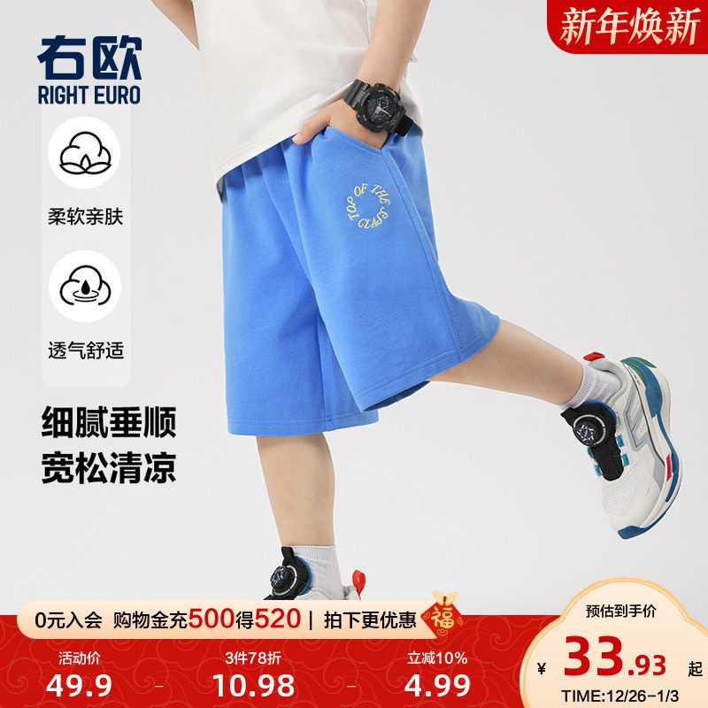 右欧男童中裤中大童五分裤女童短裤夏季新款童装纯色宽松儿童裤子
