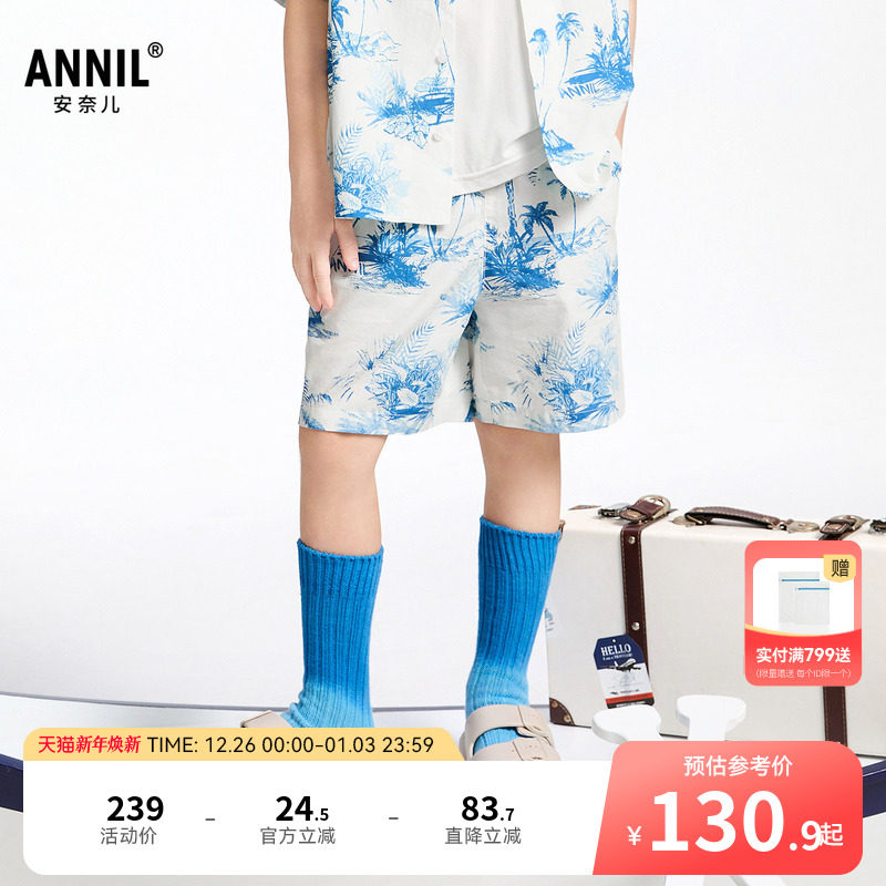 【商场同款】安奈儿童装男童中裤2025夏短裤度假风海岛风纯棉短裤
