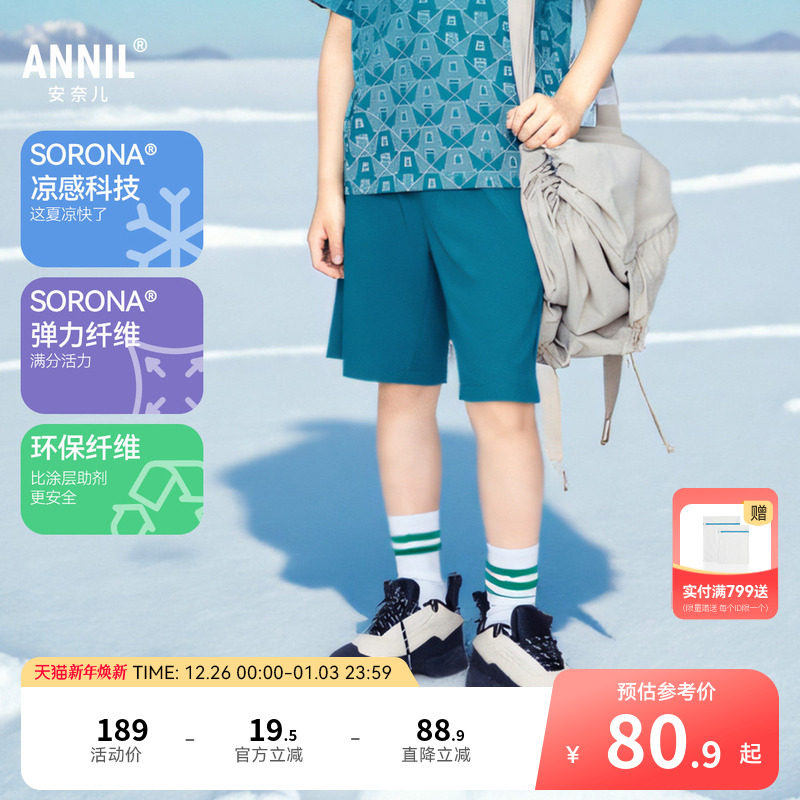【商场同款】安奈儿童装男童中裤2025夏新款休闲凉感裤子AB526666