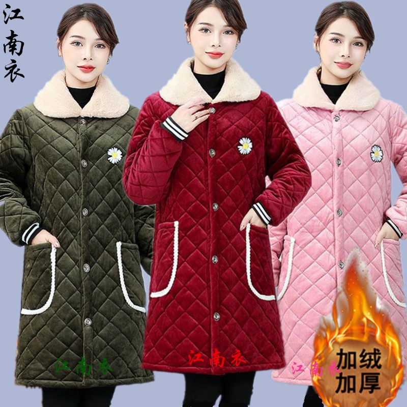 四川省服中年罩衣女冬中长款时尚加绒加厚居家棉衣妈妈装大码外套
