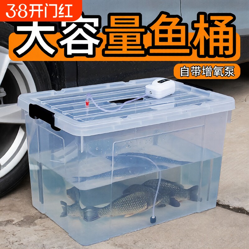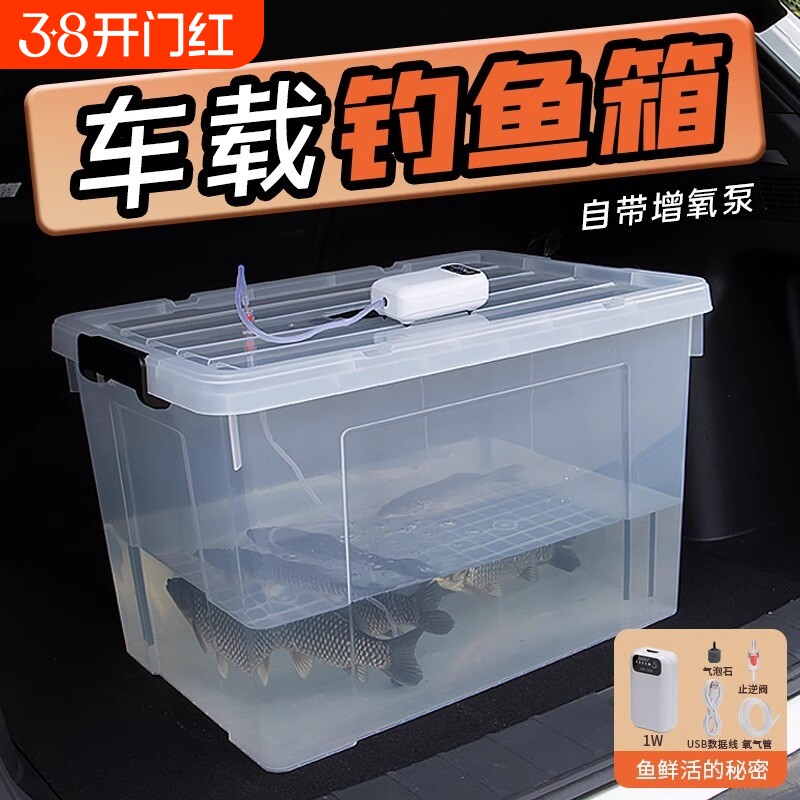 户外车载钓鱼箱后备箱活鱼桶大容量塑料箱海鲜水产养殖箱桌面鱼缸