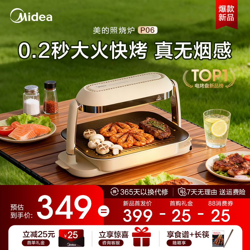 美的照烧炉P06家用无烟感烧烤炉电烤盘烤肉盘煎烤盘户外新年送礼
