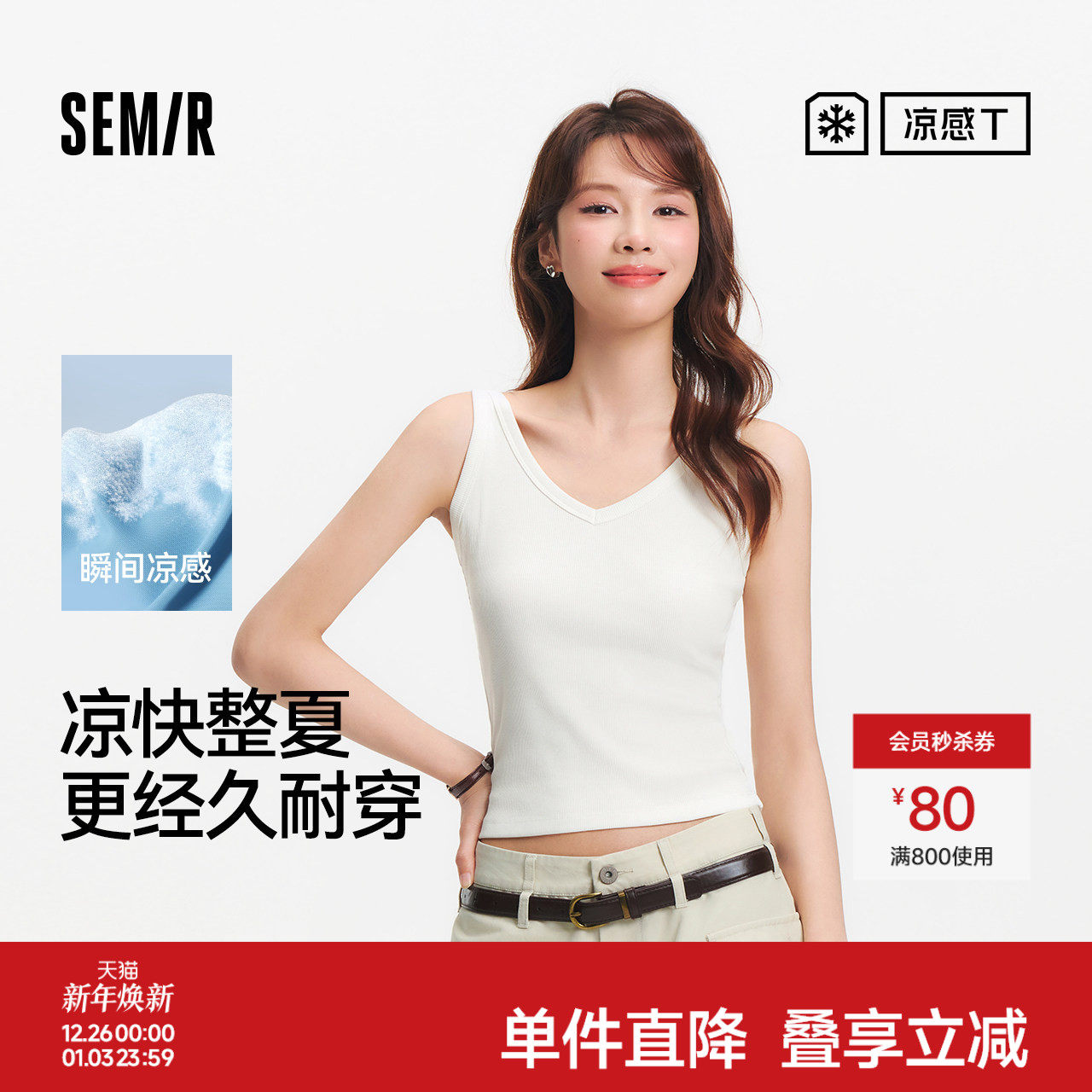 [商场同款]森马背心女短款V领紧身外穿2025夏装新款凉感叠穿百搭