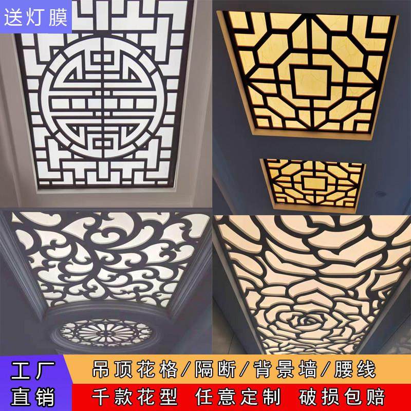 定制新中式悬吊式天花板花格pvc镂空雕花板电视背景墙格栅玄关腰