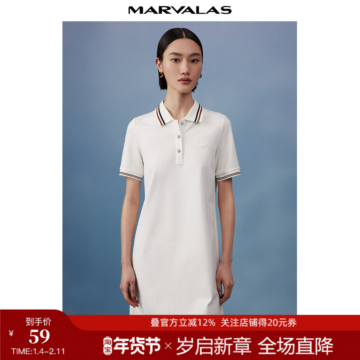 曼德诗POLO连衣裙女2025夏季新款撞色设计感直筒小个运动短袖裙子