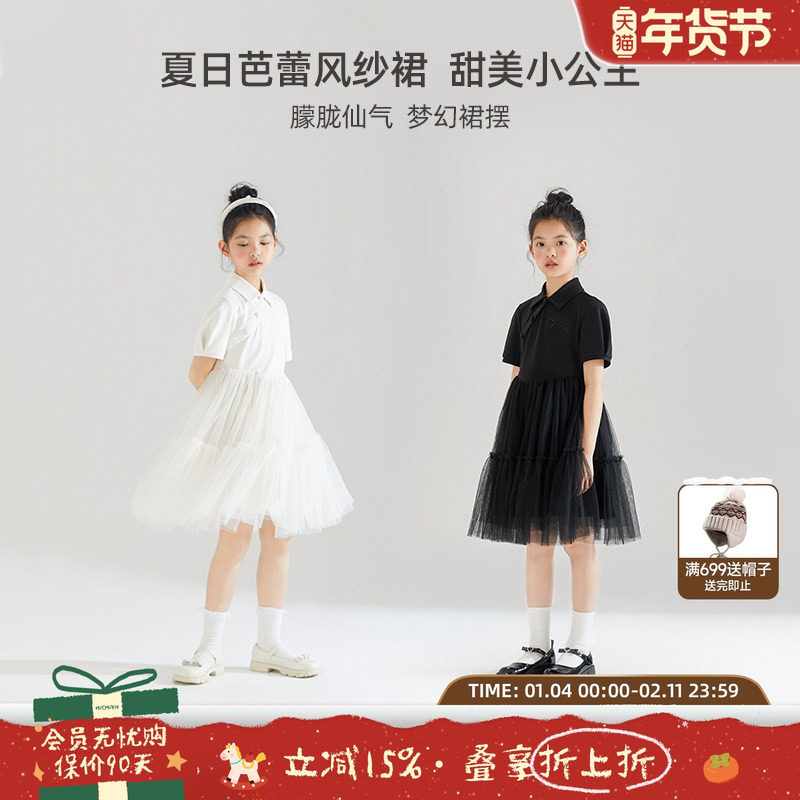 【亲肤透气】女童polo领短袖网纱连衣裙甜美可爱儿童洋气时髦长裙
