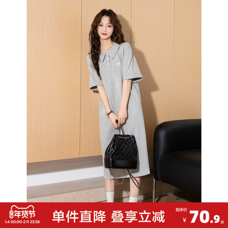 唐狮夏季短袖Polo连衣裙女夏薄款连衣裙新款运动休闲T恤裙长款Q