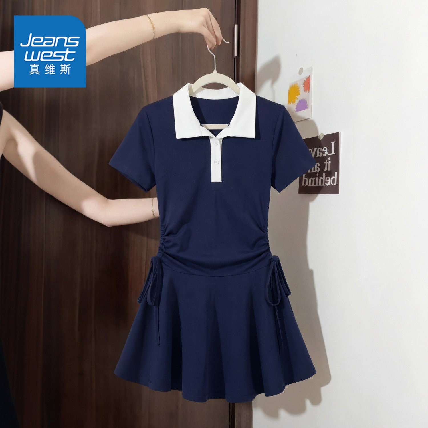 真维斯polo短袖修身连衣裙女2026新款春秋季小个子气质显瘦短裙子