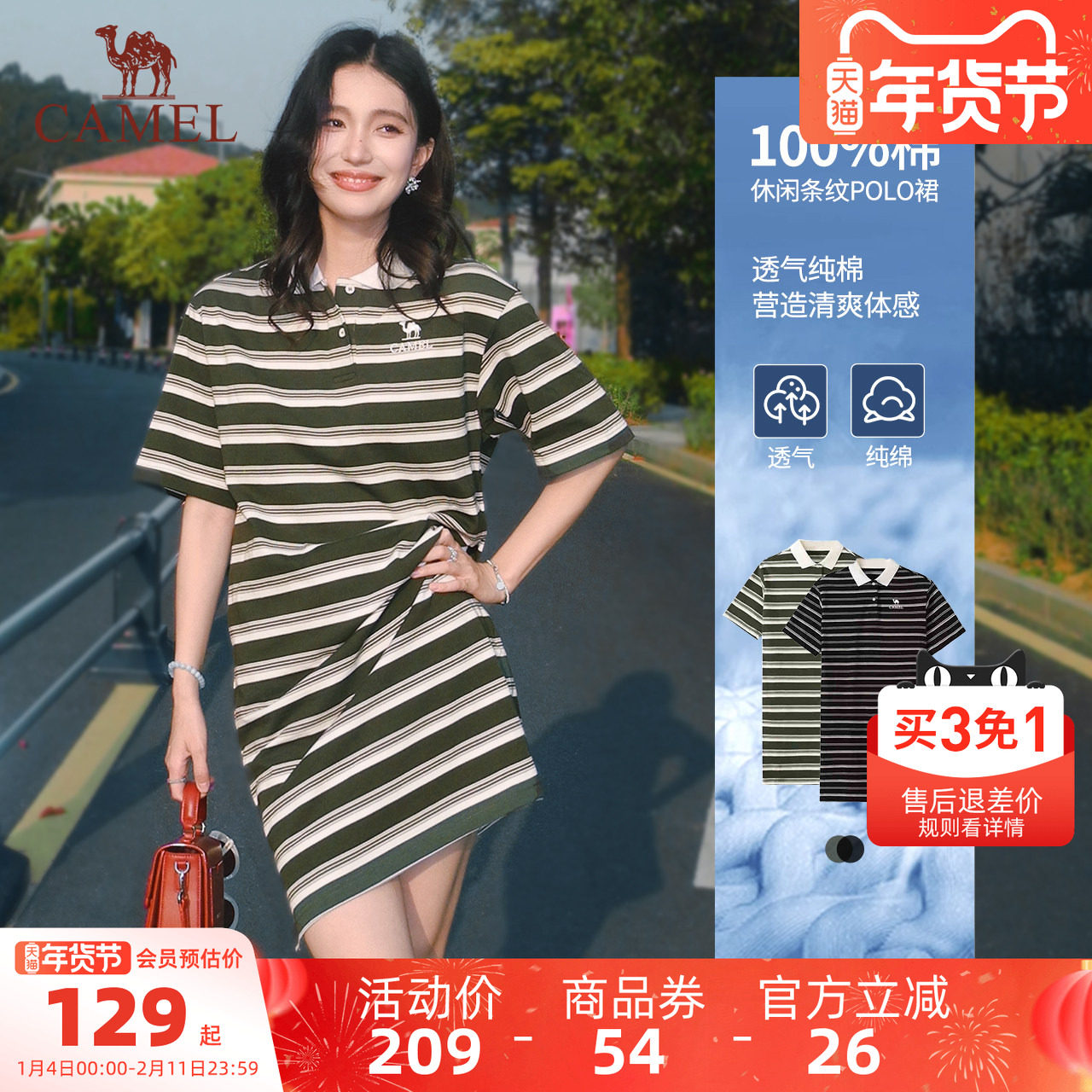 骆驼女装条纹连衣裙2025夏季款气质短袖T恤裙宽松小个子polo裙子