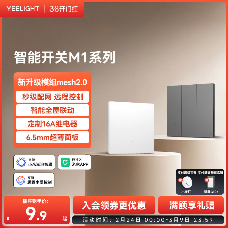 yeelight易来M1智能开关控制面板家用零火版支持Mesh2.0无线控制