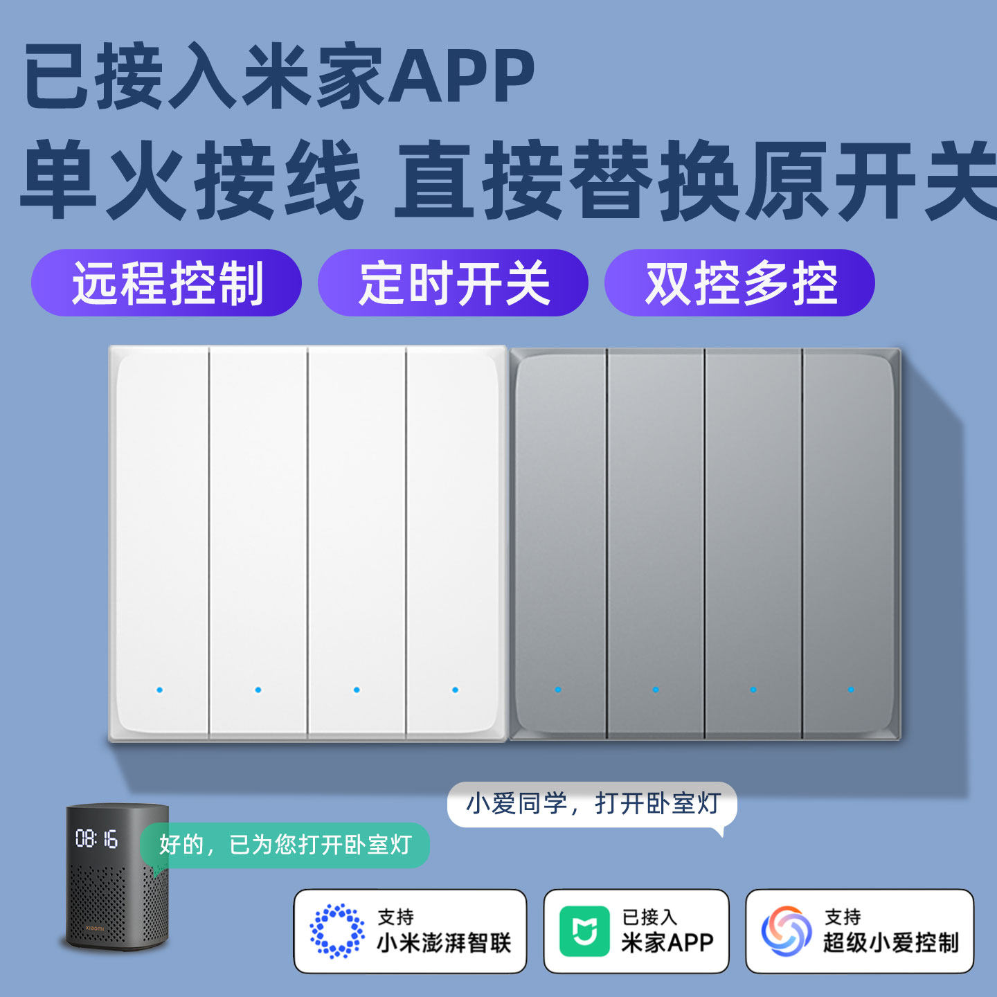 已接入米家APP 智能开关控制面板无线全屋语音单双控灯单火零火版