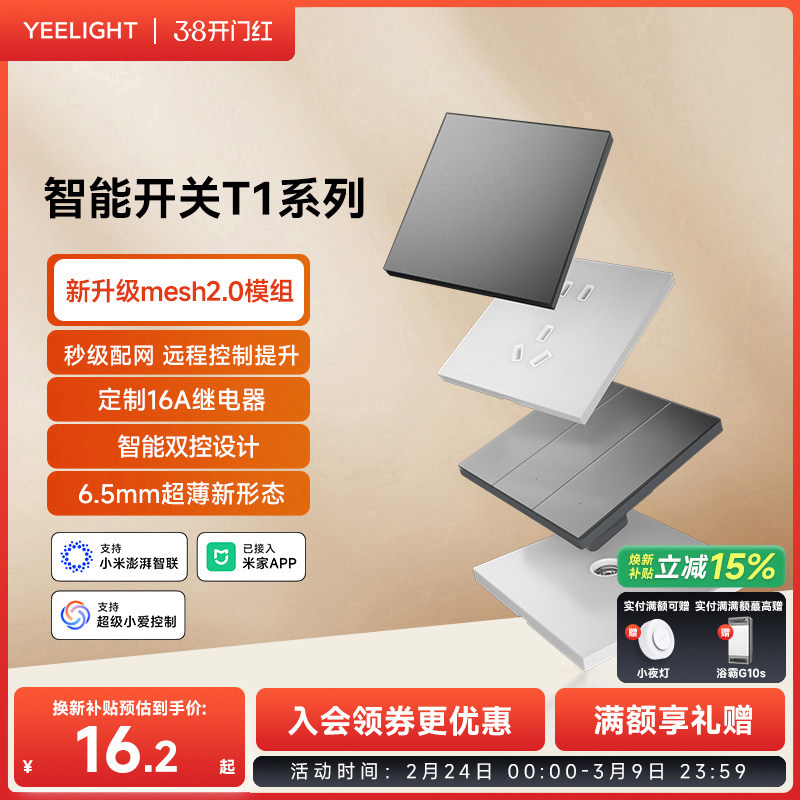Yeelight易来K1智能开关家居控制面板86盒墙单双控已接入米家APP