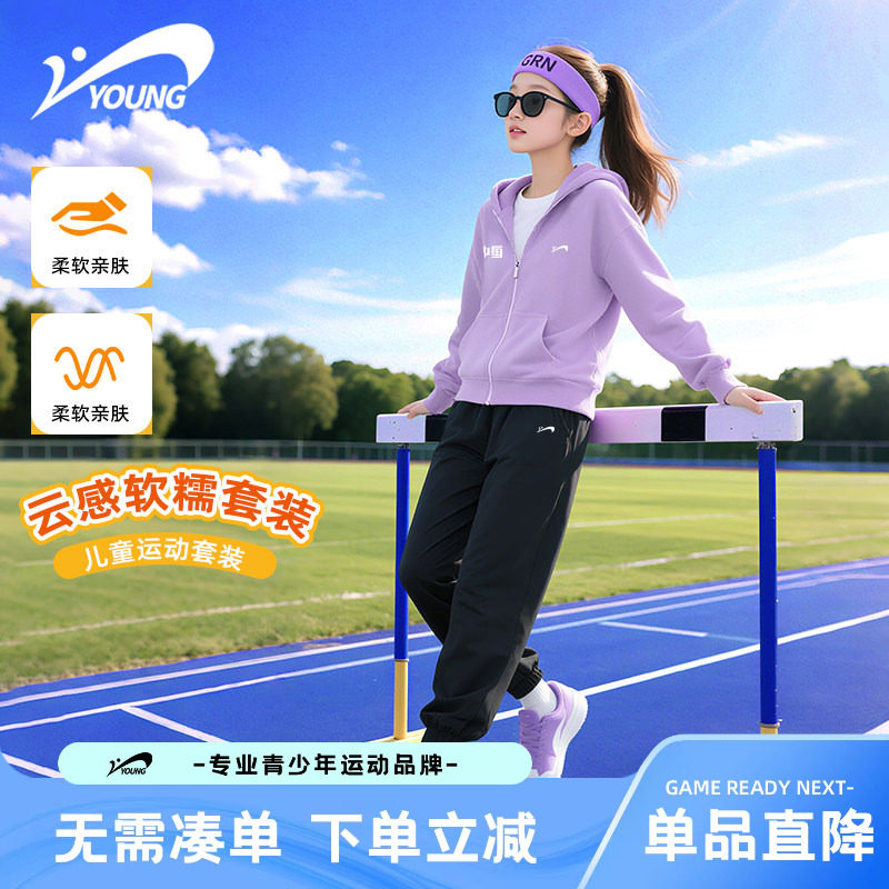 拉夏贝尔女童春装套装2026新款衣服女大童时髦裤子儿童春季卫衣紫