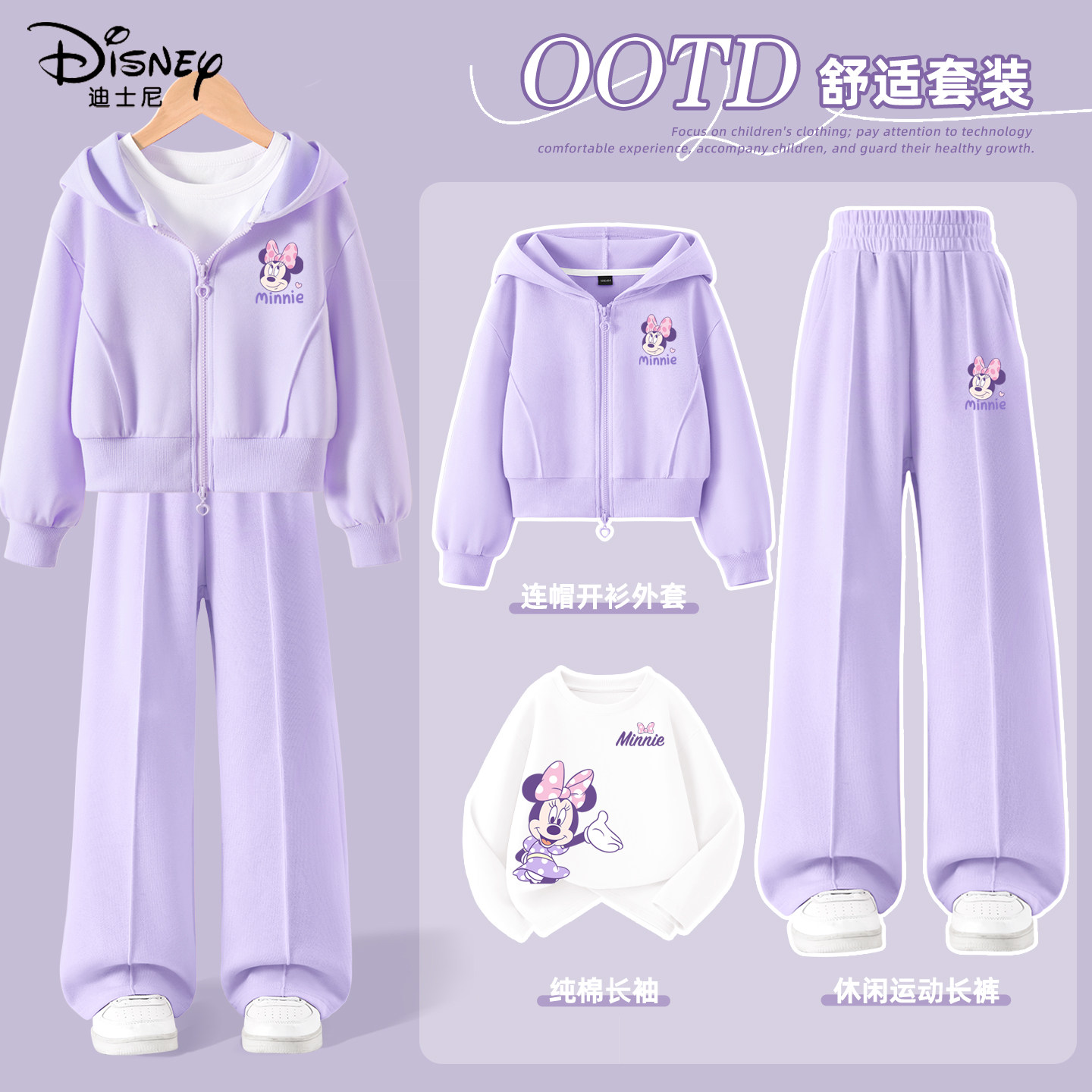 迪士尼女童春季套装2026新款休闲运动10大童女孩紫色童装儿童春装