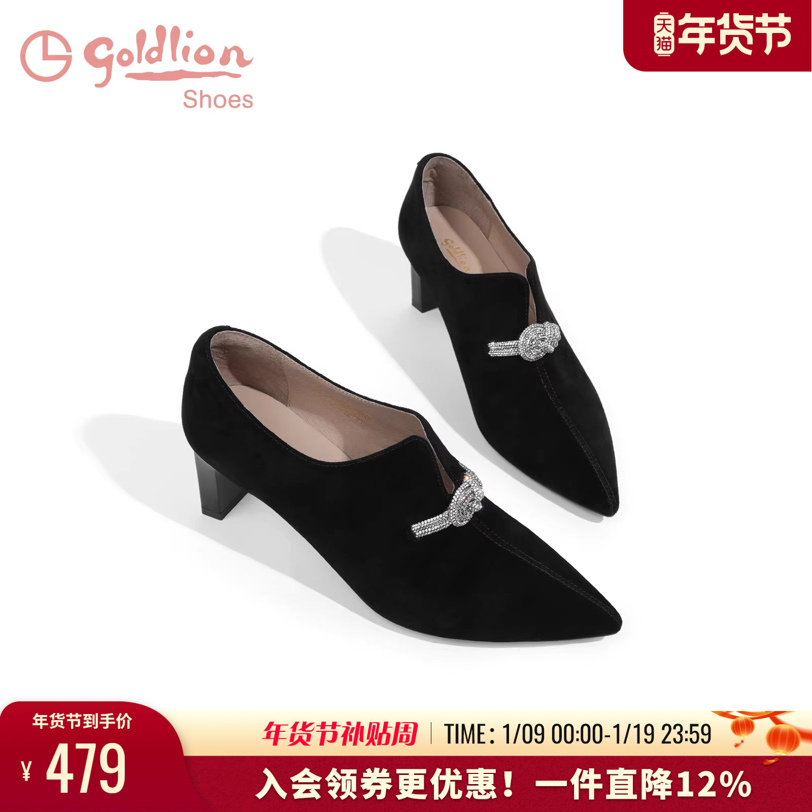 金利来春秋新款优雅尖头单鞋女粗跟通勤磨砂皮高跟鞋深口法式女鞋