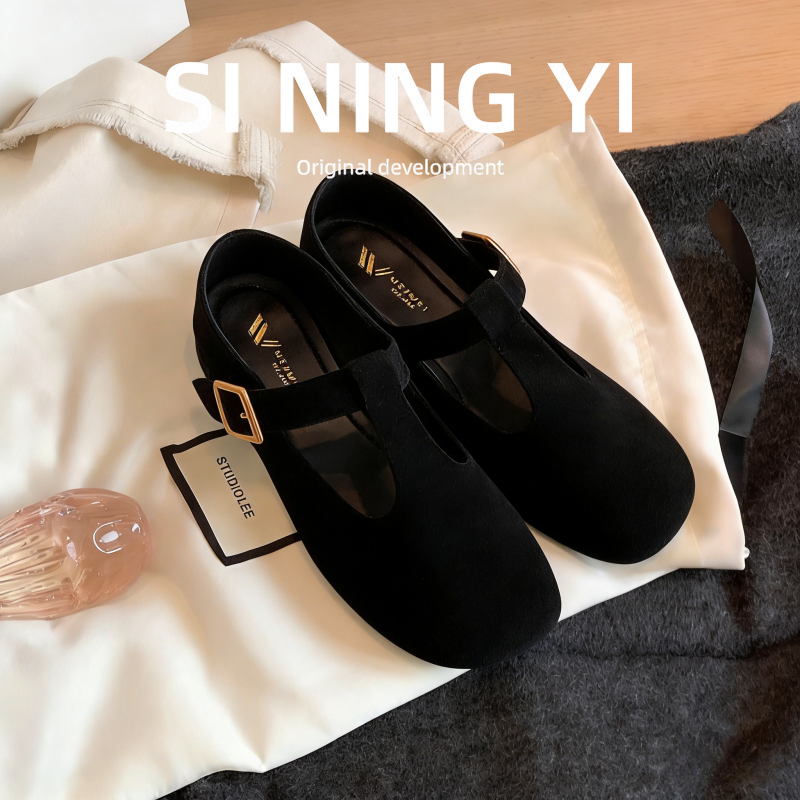 小众~玛丽珍单鞋女秋季新款磨砂皮粗跟单鞋复古风丁字扣带鞋大码