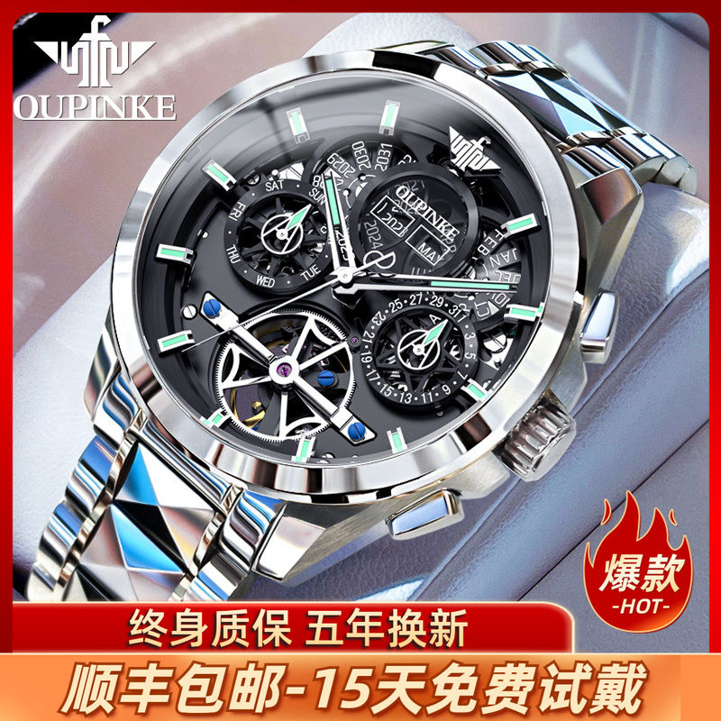 全自动机械手表男款陀飞轮高级感钢带商务休闲防水夜光男士送男友